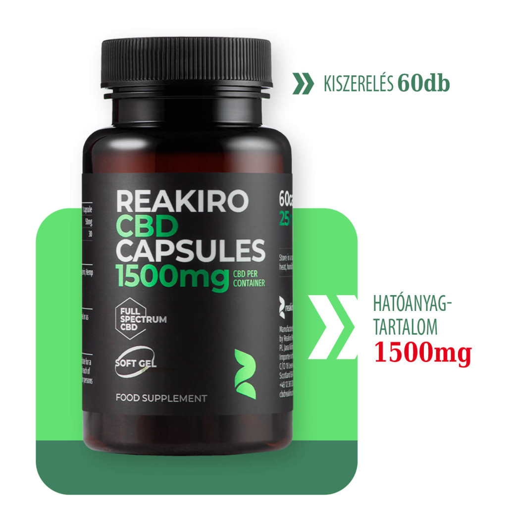 Ez a 1500mg hatóanyag tartalmú 60db-os Reakiro teljes spektrumú CBD kapszula bemutatását olvassa!